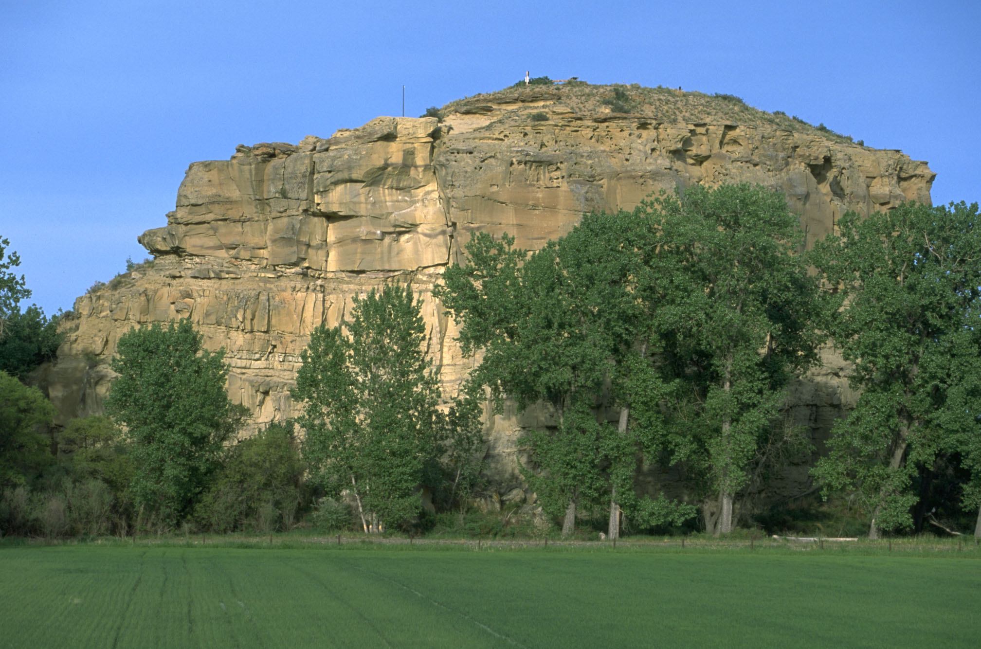 At the Pompey’s Pillar National Monument, volunteers have six different options on how to help out. They can choose to 1)Pull weeds and replant native trees 2)Restore the parking area 3)restore the nature trail construction 4)replace deteriorated boardwalk peices 5)remove barbed wire or 6)clean up trash and debris.
