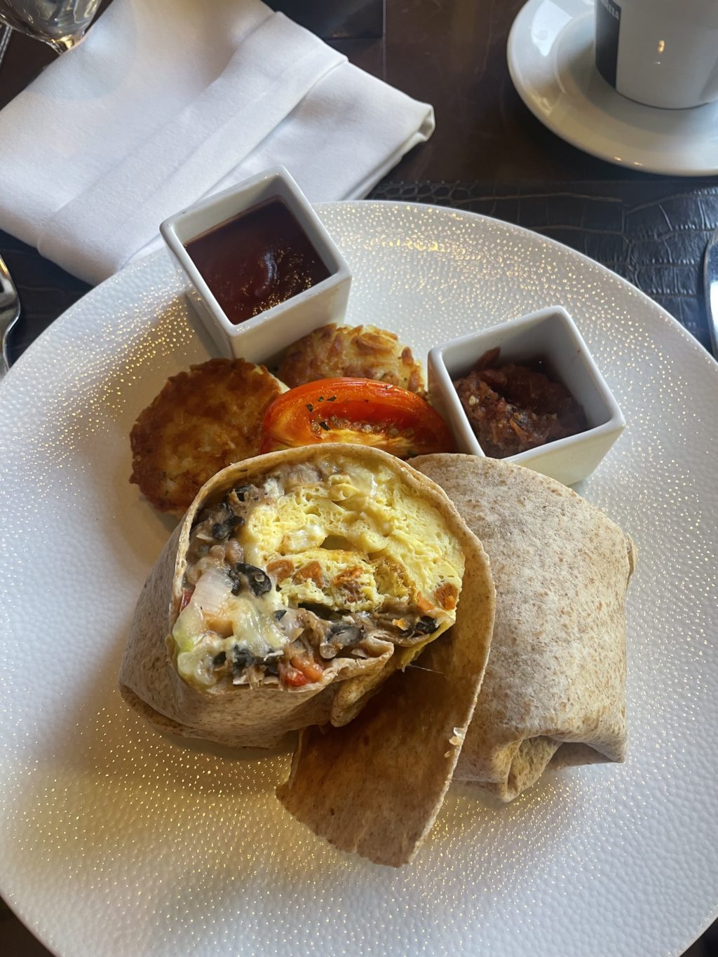 At Flame, I opted for the breakfast burrito and it was very filling. The green juice (“green machine”) — a mixture of green apple, kale, cucumber, pineapple, celery, lemon, ginger and parsley — caused me to go out and a buy a juicer when I returned home.